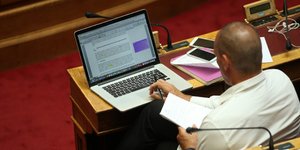 ΠΟΛΙΤΙΚΗ 14/08/2015 12:01 Στη Βουλή γινόταν χαμός και ο Βαρουφάκης έγραφε στο MacBook γιατί τάχθηκε με το «όχι», αλλά και υπέρ του Τσίπρα