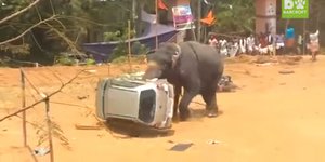 Ελέφαντας θύμωσε και τα... έβαλε με μηχανή και αυτοκίνητο