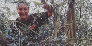 Γνωστή παρουσιάστρια ειδήσεων, στο δένδρο, μαζεύει ελιές [εικόνα]