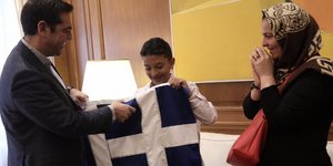 ΠΟΛΙΤΙΚΗ 04/11/2017 16:24 Ο Τσίπρας χάρισε ελληνική σημαία στον 11χρονο Αμίρ: Μιας και δεν σου την έδωσαν, θα σου κάνω εγώ μια δώρο