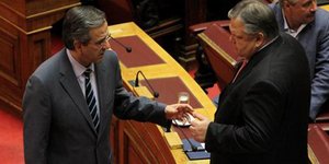 Μετά τις βουλευτικές εκλογές του Ιουνίου του 2012, υπήρξε συμφωνία μεταξύ του ΠΑΣΟΚ, της ΝΔ και της ΔΗΜΑΡ, για συγκρότηση κυβέρνησης συνασπισμού, με πρωθυπουργό τον Πρόεδρο της ΝΔ Αντώνη Σαμαρά. Τα μέλη της τρικομματικής αυτής Κυβέρνησης επιλέχθηκαν από τους τρεις πολιτικούς αρχηγούς. Ο Ευάγγελος Βενιζέλος, επέλεξε να μην προτείνει κοινοβουλευτικά στελέχη του κόμματός του, αλλά πρότεινε προσωπικότητες οι οποίες δεν ήταν «παιδιά» του κόμματος. Μετά την αποχώρηση της ΔΗΜΑΡ από την Κυβέρνηση, ξεκαθάρισε ότι στηρίζει τη Κυβέρνηση. Μαζί με τον Πρωθυπουργό Αντώνη Σαμαρά, προχώρησαν σε Ανασχηματισμό της Κυβέρνησης, με τον ίδιο να αναλαμβάνει Αντιπρόεδρος της Κυβέρνησης και Υπουργός Εξωτερικών της χώρας. Στον ανασχηματισμό, επέλεξε να τοποθετήσει κοινοβουλευτικά στελέχη του ΠΑΣΟΚ. Τις δύο αυτές θέσεις κράτησε και μετά τον δεύτερο ανασχηματισμό της κυβέρνησης, στις 9 Ιουνίου του 2014.
