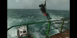 ΚΟΣΜΟΣ 14/06/2014 21:35 Ενα επικίνδυνο επάγγελμα: Αλλάζουν βάρδια στον φάρο σαν κασκαντέρ πάνω από τα τεράστια κύματα [βίντεο]