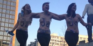 ΚΟΣΜΟΣ 27/02/2015 14:45 Γυμνόστηθες FEMEN έξω από τα γραφεία της Bild χορεύουν συρτάκι και πίνουν ούζο [εικόνες]