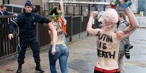 ΚΟΣΜΟΣ 28/01/2013 08:53 Γυμνόστηθες ακτιβίστριες εναντίον αστυνομικών δυνάμεων στο Νταβός [βίντεο, εικόνες]