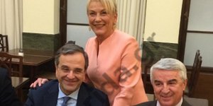 ΠΟΛΙΤΙΚΗ 06/12/2013 20:49 Φιλοφρονήσεις Σαμαρά σε Πιπιλή για το εκτυφλωτικό σομόν συνολάκι της [εικόνα]