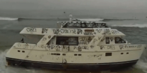 ΚΟΣΜΟΣ 09/10/2014 10:54 Ο πιο άτυχος ιδιοκτήτης σκάφους -Χάλασε το γιοτ, η θάλασσα το ξέβρασε στην ακτή και πιτσιρικάδες το γέμισαν γκράφιτι [βίντεο]