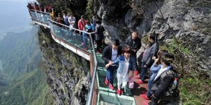 ΚΟΣΜΟΣ 31/08/2015 10:23 Βρίσκεται στα 5.000 πόδια στο γκρεμό, σε γυάλινη γέφυρα -Δείτε την κρίση πανικού που παθαίνει [εικόνες+βίντεο]