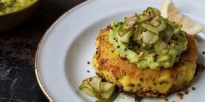 Μπιφτέκια πατάτας με αγγούρι τουρσί