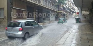 Ποτάμια οι δρόμοι στη Λαμία από την καλοκαιρινή μπόρα [εικόνες & βίντεο]