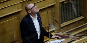 Ο Κλέων Γρηγοριάδης έπεσε με τη μηχανή μέσα στο πάρκινγκ της Βουλής