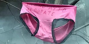 ΠΟΛΙΤΙΚΗ 08/03/2017 16:12 Αγρότες κρέμασαν γυναικείο εσώρουχο στα γραφεία του ΣΥΡΙΖΑ: «Μόνο αυτό δε μας πήρατε»[εικόνα]