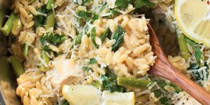 Κριθαρότο με κοτόπουλο και σπαράγγια