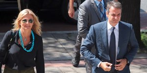 Χανιά: Κυριάκος και Μαρέβα για μπάνιο στο Μαράθι [εικόνες]