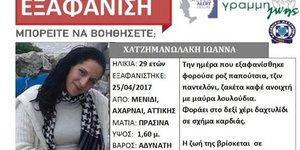 ΕΛΛΑΔΑ 15/05/2017 22:50 Βρέθηκε η 29χρονη μητέρα από το Μενίδι- Το συγκινητικό μήνυμα της αδελφής της στο Facebook [εικόνα]