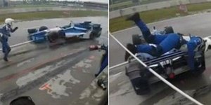 Βίντεο-σοκ: Οδηγός αγώνων παρέσυρε το μηχανικό του [βίντεο]