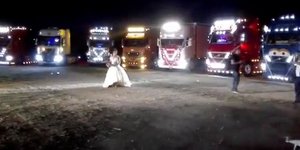 ΕΛΛΑΔΑ 03/10/2016 18:52 Γάμος με 20 νταλίκες στη Θεσσαλονίκη -Η θορυβώδης συνοδεία του ζευγαριού στην εκκλησία [βίντεο]