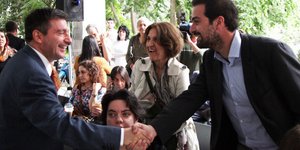 ΠΟΛΙΤΙΣΜΟΣ 05/06/2014 15:16 Οι προεκλογικοί πάγοι έλιωσαν: Θερμή χειραψία Καμίνη-Σακελλαρίδη με φόντο τη Γιορτή Βιβλίου [εικόνες]