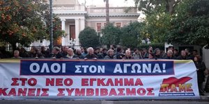 ΕΛΛΑΔΑ 15/10/2015 07:56 Κατάληψη του ΠΑΜΕ στο υπουργείο Εργασίας -Ανέβηκαν στην ταράτσα, άπλωσαν τεράστιο πανό [εικόνες]