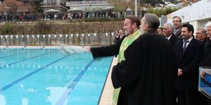«Εχασε» την... πισίνα στη ρίψη του Σταυρού [βίντεο]