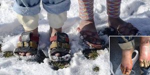ΚΟΣΜΟΣ 23/02/2016 16:43 Εικόνες σοκ: Πρόσφυγες με κρυοπαγήματα στα πόδια -Με σαγιονάρες στους πάγους [εικόνες]