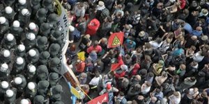 ΚΟΣΜΟΣ 01/06/2013 19:28 Σπρέι πιπεριού και κλομπ κατά των διαδηλωτών της Blockupy - «Εξω το ΔΝΤ από την Ελλάδα» έγραφαν στα πανό