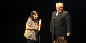 ΠΟΛΙΤΙΣΜΟΣ 23/05/2013 14:45 Ο Μένης Κουμανταρέας «σφυροκοπά» τον Κώστα Τζαβάρα που καθόταν στην πρώτη σειρά της κατάμεστης Στέγης [εικόνες]