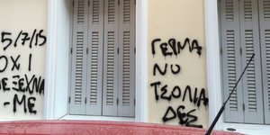 Λάρισα: Εγραψαν συνθήματα στα γραφεία των ΑΝΕΛ [εικόνα]