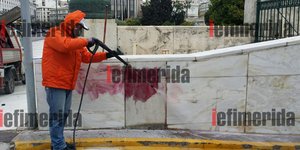 Σβήνουν τα συνθήματα της ντροπής από τη Βουλή [εικόνες]