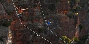 ΚΟΣΜΟΣ 25/03/2015 21:07 Βόλτες πάνω σε τεντωμένο σχοινί -Δεκάδες θαρραλέοι περπάτησαν σε ύψος έως και 100 μέτρων [εικόνες]