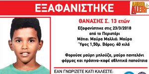 ΕΛΛΑΔΑ 27/03/2018 10:57 Θρίλερ με τον 13χρονο Θανάση Σ. που αγνοείται -Είχε πέσει θύμα φρικτής εκμετάλλευσης από την οικογένειά του
