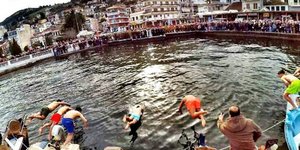 Άλλο έθιμο είναι η ανέλκυση του Σταυρού από κολυμβητές, τους βουτηχτάδες. Αυτός που πιάνει το Σταυρό αφού πρώτα το φιλήσει είθισται να το περιφέρει στις οικίες και λαμβάνει πλούσια δώρα. Πλέον, το έθιμο έχει περιοριστεί στο πιάσιμο του Σταυρού και μόνο.