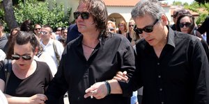 ΖΩΗ 03/07/2018 18:03 Ο πρώην σύζυγος (Θάνος Καληώρας) και ο νυν, αγκαζέ, στην κηδεία της Τζέσυς Παπουτσή [εικόνες]