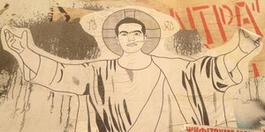 ΠΟΛΙΤΙΚΗ 05/07/2015 13:08 Ξένοι δημοσιογράφοι τουιτάρουν: «Ζωγράφισαν τον Τσίπρα σαν θεό σε εκλογικό κέντρο» [εικόνες]