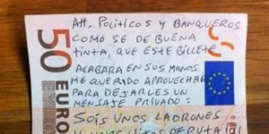 ΚΟΣΜΟΣ 05/11/2013 16:47 Οι οργισμένοι Ισπανοί βρίζουν πολιτικούς και τραπεζίτες πάνω σε χαρτονομίσματα [εικόνες]
