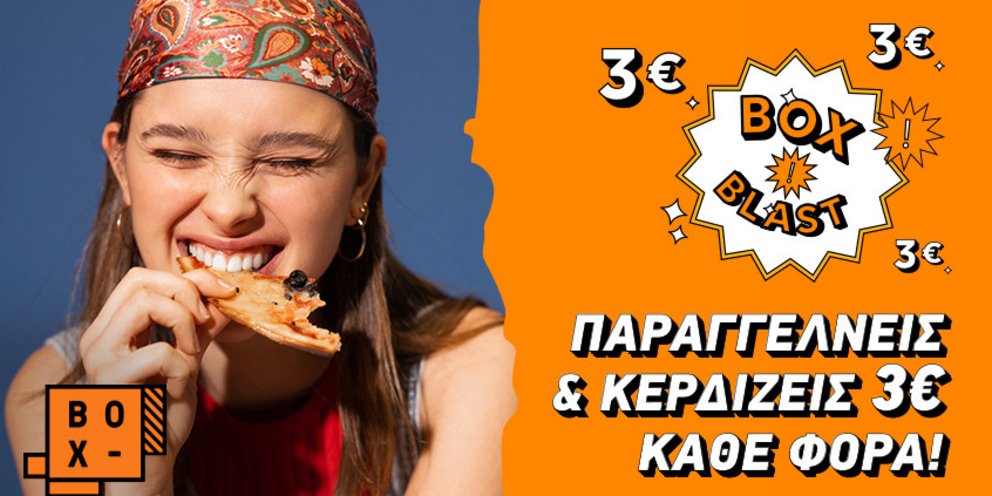 Έκπτωση 3€ σε κάθε παραγγελία φαγητού, καφέ, γλυκού, από την πρώτη κιόλας παραγγελία, προσφέρει τo BOX για άλλη μια φορά, με την μοναδική προσφορά ΒΟΧ BLAST.