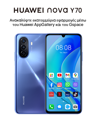 Το HUAWEI nova Y70 συνδυάζει την τεχνολογία με τη μόδα και την αξιόπιστη διαδραστική εμπειρία για τον κάθε χρήση. Το smartphone κληρονόμησε το εξαιρετικό DNA της σειράς nova Y συγκεντρώνοντας μια σειρά από εντυπωσιακά χαρακτηριστικά, συμπεριλαμβανομένης μιας οθόνης HUAWEI FullView 6,75 ιντσών, μιας μεγάλης μπαταρίας 6000mAh που φορτίζει ταχύτατα χάρη στο HUAWEI SuperCharge 22,5W αλλά και ένα κορυφαίο σύστημα τριπλής κάμερας AΙ. Για όλους τους λάτρεις της φωτογραφίας, το Nova Y70 ενσωματώνει ένα σύστημα τριπλής κάμερας AI, συμπεριλαμβανομένης μιας κύριας κάμερας υψηλής ανάλυσης 48MP, μιας κάμερας Ultra-Wide-Wide-Angl e 120 ° 5MP, μιας κάμερας βάθους 2MP και της μπροστινής κάμερας 8MP για ευκρινείς και λεπτομερείς selfies.