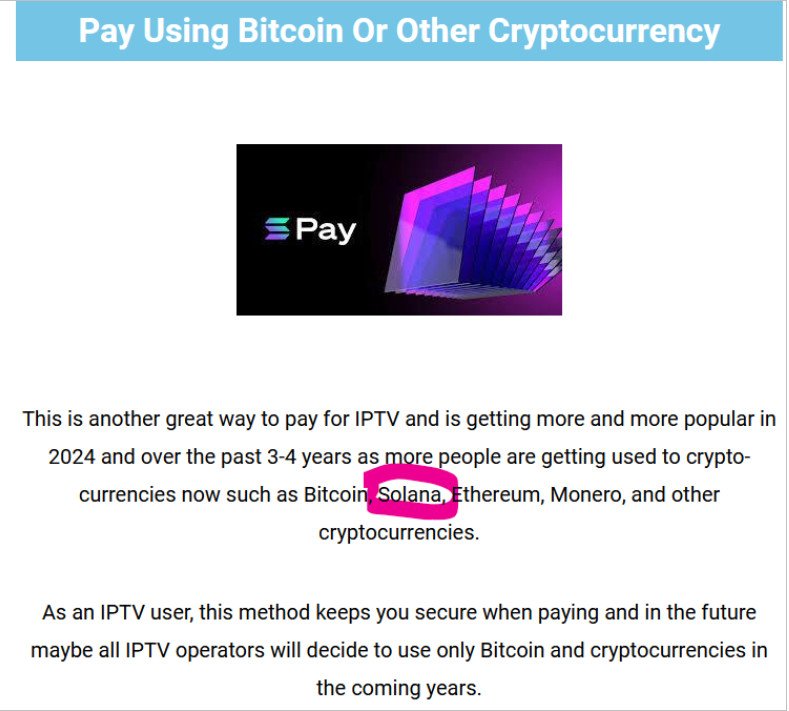 Το ίδιο κρυπτονόμισμα έχει εντοπιστεί και σε μεγάλα πειρατικά δίκτυα συνδρομητικής τηλεόρασης, όπου οι χρήστες παραπλανώνται ή εν αγνοία τους εμπλέκονται σε ύποπτες συναλλαγές, αφού πολλοί πειρατές έχουν μεθόδους πληρωμών τέτοια κρυπτονομίσματα.
