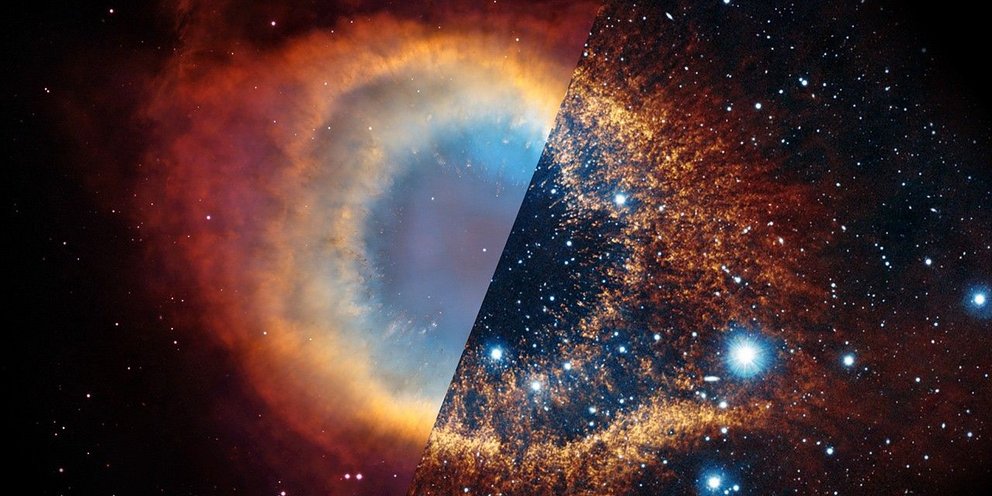 Η εικόνα του Webb καταγράφει αυτή την ανακύκλωση ως ένα βίαιο μείγμα: γρήγορο, θερμό αέριο που σπρώχνει και «χτυπά» πάνω σε πιο αργά, ψυχρά κελύφη υλικού, τα οποία είχαν αποβληθεί σε προγενέστερη φάση της ζωής του άστρου. Η σύγκρουση αυτών των διαφορετικών «γενεών» ύλης είναι που σμιλεύει τη χαρακτηριστική δομή του Helix, σαν να χαράζει ο χρόνος την ίδια του την ιστορία επάνω σε ένα διαστελλόμενο κέλυφος.