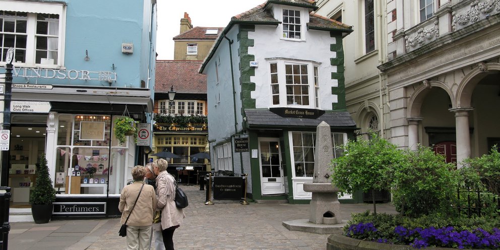 Στη σκιά του Κάστρου του Ουίνδσορ, δίπλα στο Guildhall (το ιστορικό δημαρχείο) στη High Street, στέκεται ένα από τα πιο αναγνωρίσιμα και πολυφωτογραφημένα κτίρια της Αγγλίας: το Market Cross House, γνωστό ως Crooked House του Windsor.