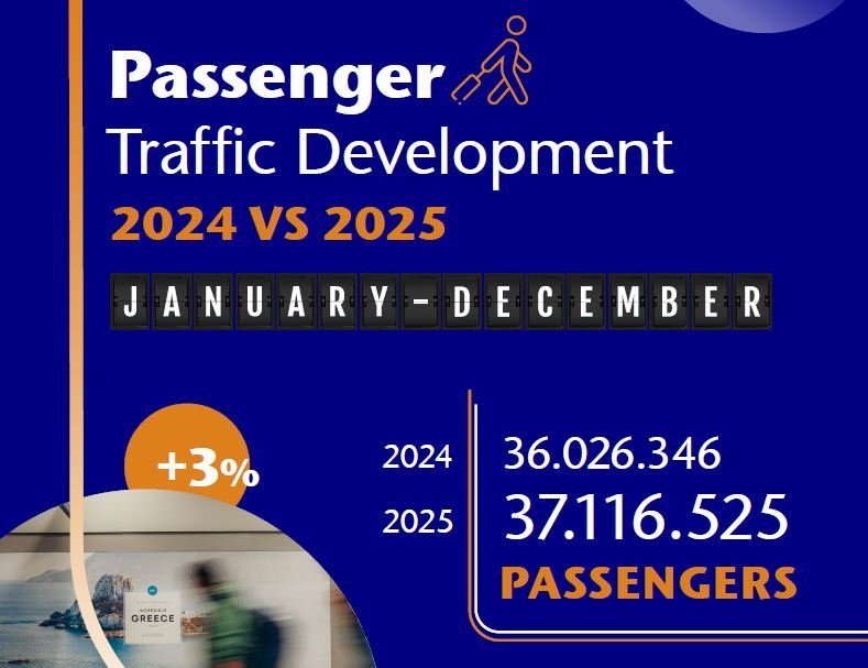 Η θετική εικόνα του Δεκεμβρίου αντικατοπτρίζει τη συνολική πορεία του 2025, έτους κατά το οποίο η Fraport Greece υποδέχθηκε περισσότερους από 37 εκατομμύρια επιβάτες, σημειώνοντας αύξηση 3% σε σύγκριση με το 2024.
