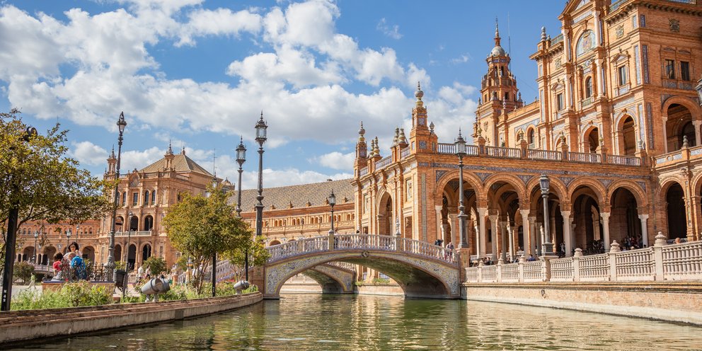 Μια από τις ομορφότερες πλατείες της Ευρώπης η Πλάθα δε Εσπάνια (Plaza de España) είναι σύμβολο της Αναγέννησης όχι μόνο για τη Σεβίλλη αλλά και για ολόκληρη την Ισπανία. Στοές, αψίδες, πύργοι, γέφυρες, μπαλκόνια, παράθυρα και σιντριβάνια με πολύχρωμα μωσαϊκά και έντονα ψηφιδωτά σε κάνουν να νιώθεις σαν να περπατάς μέσα σε ένα τεράστιο καλειδοσκόπιο. Η έκτασή της είναι πραγματικά εντυπωσιακή (50.000 τ.μ.), ενώ η διάμετρός της φτάνει τα 170 μέτρα. Υπολόγισε, λοιπόν, ότι η βόλτα εκεί μπορεί και να σου πάρει ακόμα και μια ολόκληρη μέρα, κι αν το περπάτημα δεν είναι το φόρτε σου είναι καλύτερα να νοικιάσεις βαρκάκι και να τα χαζέψεις όλα πλέοντας στο κανάλι 515 μέτρων δίπλα στο οποίο είναι χτισμένη. Αφού θα είσαι εκεί, αξίζει να επισκεφθείς και το Πάρκο της Μαρίας Λουΐζας που είναι το απόλυτο φυσικό ησυχαστήριο. Αυτός ο πρώην βασιλικός κήπος χτίστηκε ταυτόχρονα με την Πλάθα δε Εσπάνια το 1929 και σήμερα είναι ένα μέρος εξωτικής ομορφιάς, γεμάτο πολύχρωμα λουλούδια και καταπράσινα δέντρα.