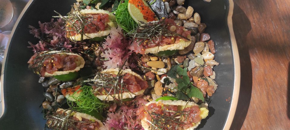 Δροσερές γεύσεις, «καθαρές» υφές και τέλεια ισορροπία συνδυασμών που αναδεικνύουν την πρώτη ύλη των πιάτων. Προτείνουμε να δοκιμάσετε την τέλεια σαλάτα με γαρίδες μαριναρισμένες, τρίχωμη κινόα, πράσινα φύλλα, αβοκάντο με ντρέσινγκ εσπεριδοειδών και μελιού που δίνει ένα πολύ γευστικό αποτέλεσμα σε κάθε μπουκιά, το λαβράκι σεβίτσε -με μαριναρισμένο το ψάρι εμποτισμένο με Yuzu και πράσινα βότανα, κρεμμύδι, κόλιανδρο, αλλά και το tacos ταρτάρ τόνου.
