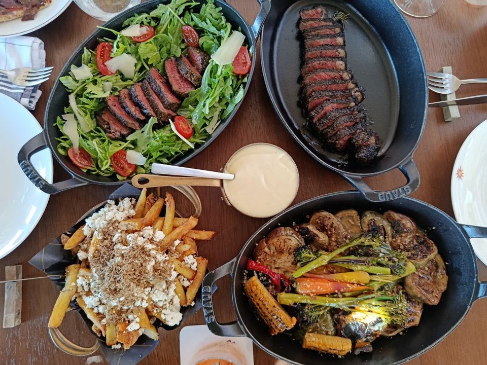 Ξεκινήστε με sushi -πιο συγκεκριμένα με το Chateubriand roll με φιλέτο μοσχαριού/ αγγούρι, την κυκλαδίτικη σαλάτα με ντομάτα που έχει πλούσια γεύση, ωραία αρώματα και η κάππαρη δίνει τη δική της πινελιά. Στα προτεινόμενα προσθέτουμε το γύρο με μοσχάρι -πολύ νόστιμο και με εκαιρετικό κομμάτι κρέατος – το τηγανιτό καλαμπόκι με spicy mayo, την picannia και την ταλιάτα που συνοδεύονται με τηγανιτές πατάτες Κι ξινομυζήθρα.