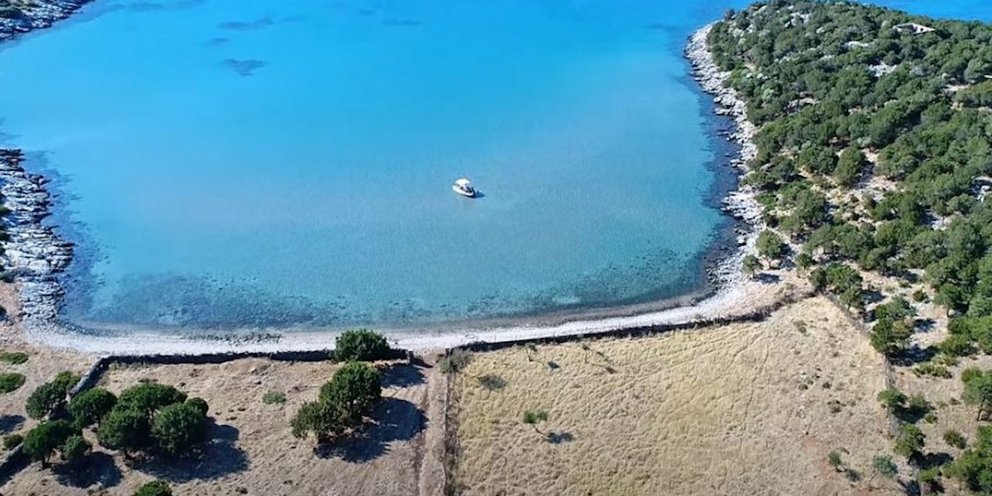Το drone του χρήστη haanity πετάει πάνω από αυτό το μέρος, που είναι απίστευτα προικισμένο. Ενας απάνεμος, μεγάλος, βαθύς όρμος με ρηχή άμμο σε όλη του την έκταση, που βαθαίνει ομαλά, με πλούσιο βυθό από θαλάσσιες ανεμώνες που κρύβονται όταν αντικρίζουν ανθρώπους και πολλά είδη ψαριών, όπως μπαρμπούνια και γλώσσες.