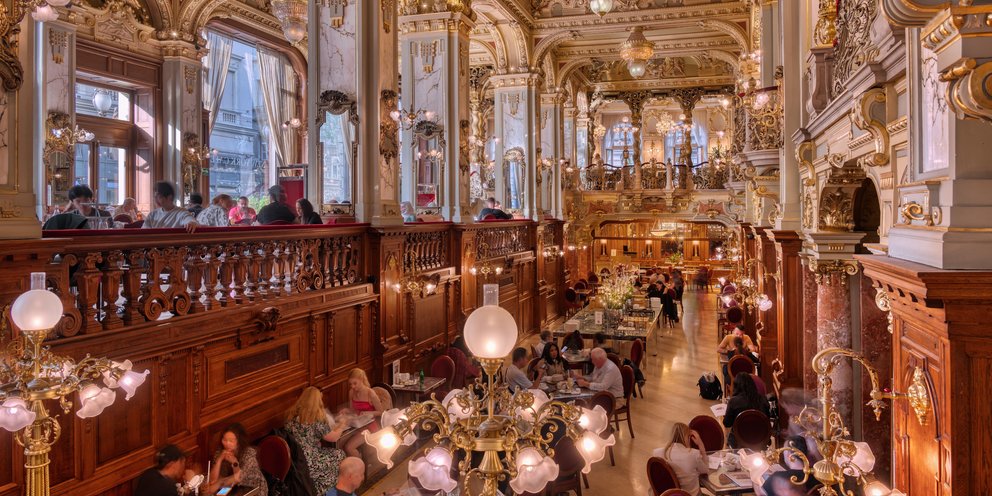 Το καφέ, που στεγάζεται στο πεντάστερο Anantara New York Palace Budapest Hotel, προσελκύει καθημερινά εκατοντάδες τουρίστες χάρη στους κρυστάλλινους πολυελαίους, τις μαρμάρινες κολόνες, τα ψηλά ταβάνια και τις χρυσές λεπτομέρειες, ενώ προσφέρει γκουρμέ πιάτα και ζωντανή μουσική.