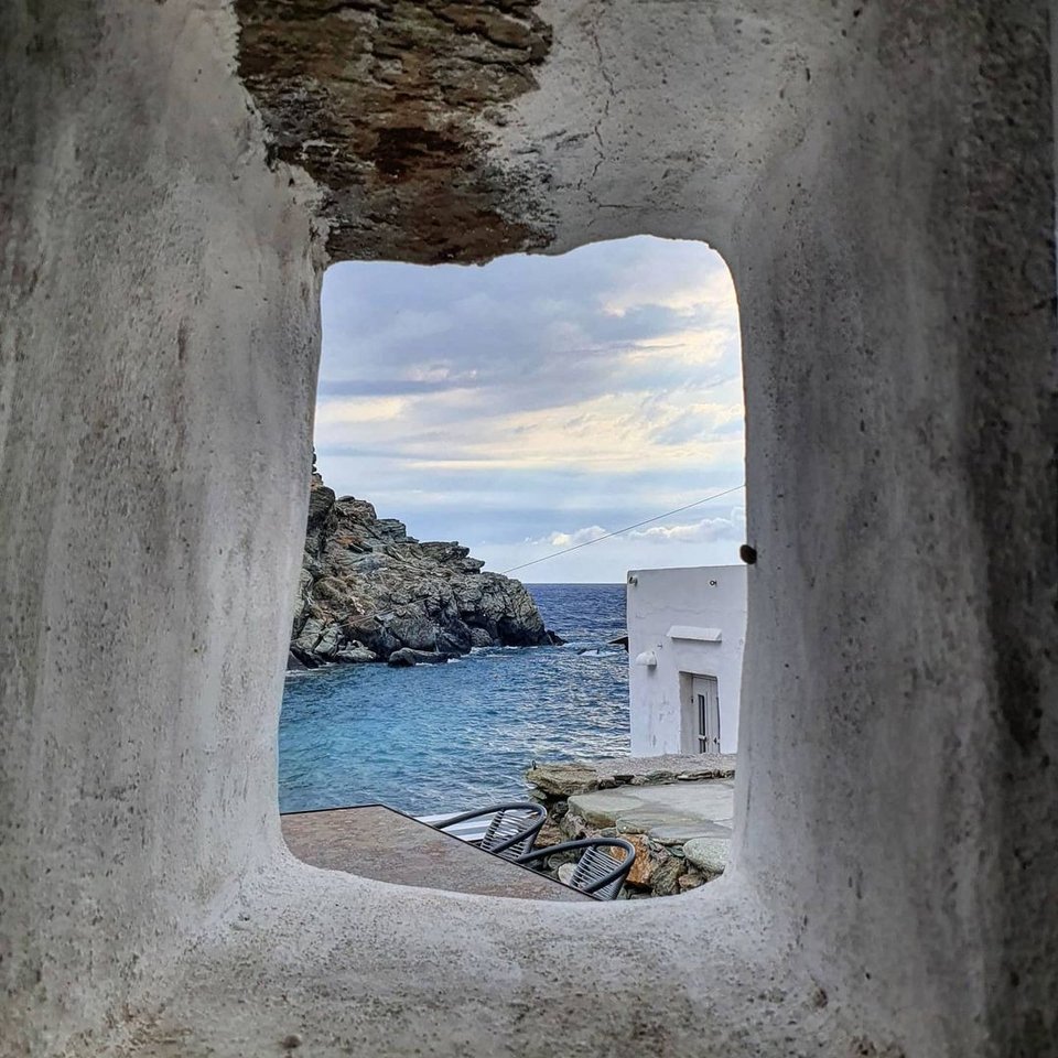 Τα 99 σκαλιά για την κατάβαση και κυρίως για την ανάβαση από την παραλία ήταν ο λόγος που το σημείο αυτό πάντα προοριζόταν για λίγους και καλούς. Εκεί, λοιπόν, βρήκε ο Γιώργος Σαμοΐλης, ο chef που κάποτε ήταν μοριακός βιολόγος, το ιδανικό σκηνικό να δημιουργήσει την Cantina. Εντόπισε το συγκεκριμένο σημείο και έκανε «μια απρόσμενη, κυκλαδίτικη έκπληξη», φτιάχνοντας ένα εστιατόριο που μοιάζει να βγήκε κατευθείαν από τα βράχια!