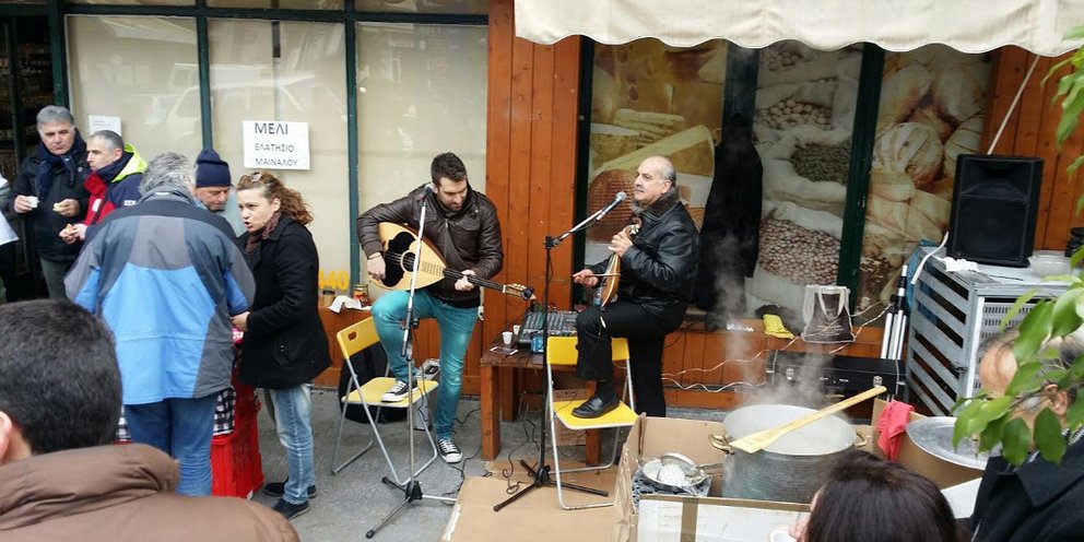 Στο «Ζυμομελι» ψήνουν και τρώνε έξω από το μαγαζί και καλούν τους περαστικούς να γευτούν δωρεάν προϊόντα απ όλη την Ελλάδα υπό τους ήχους παραδοσιακής κρητικής μουσικής, ενώ η έκπληξη της ημέρας ήταν η μαντινάδα που αφιέρωσε ο λυράρης στον υπουργό Οικονομικών Γιάννη Βαρουφάκη.