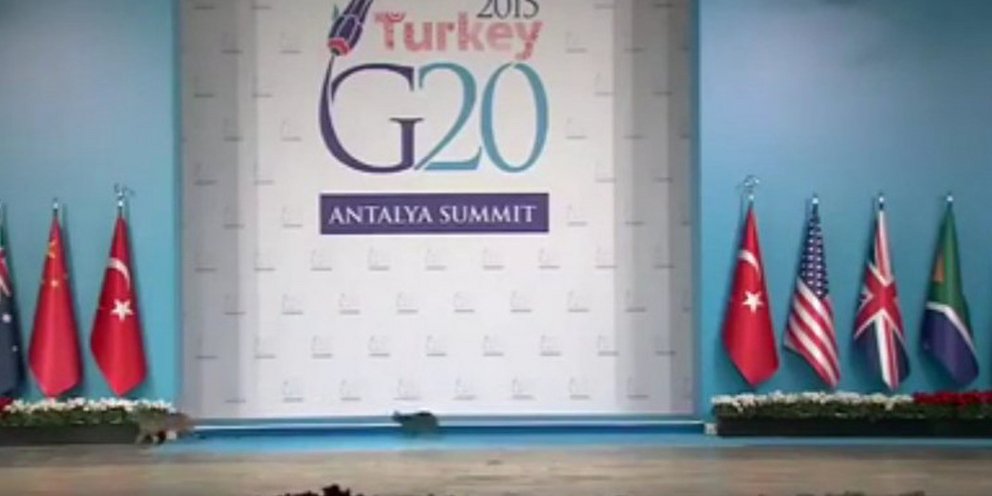 Τα μέτρα ασφαλείας ήταν δρακόντεια για τη Σύνοδο των G20 στην Αττάλεια της Τουρκίας όμως τρεις γάτες κατάφεραν να βρεθούν πάνω στην σκηνή, λίγο πριν κάνουν την εμφάνισή τους ο Μπαράκ Ομπάμα και ο Βλαντιμίρ Πούτιν.