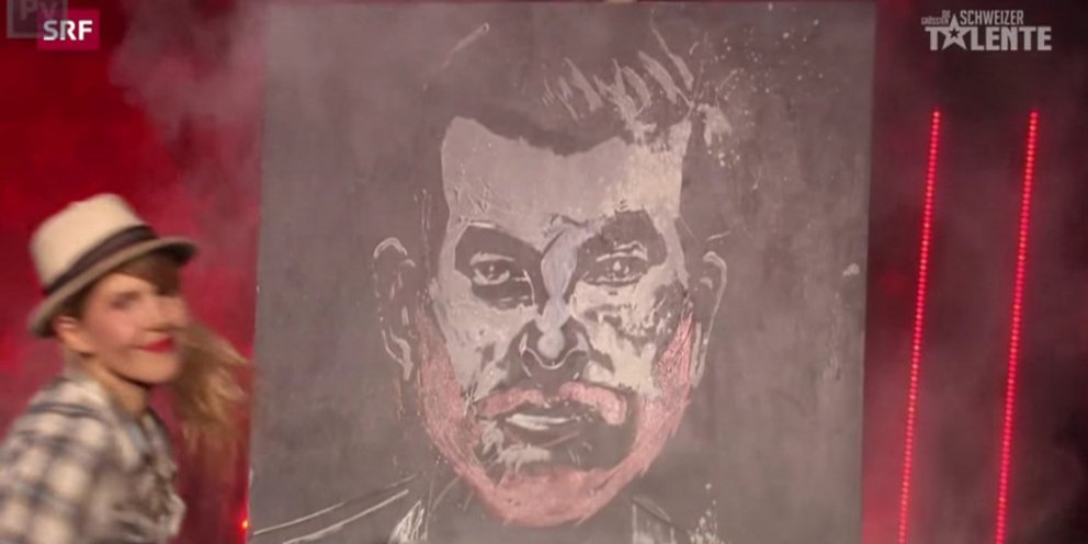 Η Corinne συνέχισε να ζωγραφίζει και αφού γύρισε τον πίνακα ανάποδα, φύσηξε μια σκόνη, και εμφανίστηκε η προσωπογραφία του Bligg Ζusammen (ενός εκ των κριτών).
