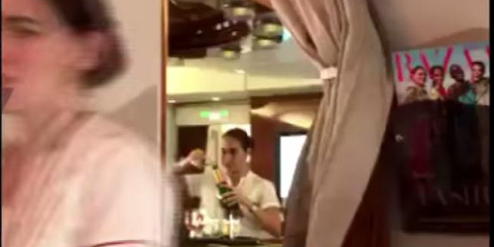 Μια αεροσυνοδός της πολυτελούς αεροπορικής εταιρείας, ρίχνει πίσω στο μπουκάλι της σαμπάνιας το... υπόλοιπο από το ποτήρι ενός επιβάτη!